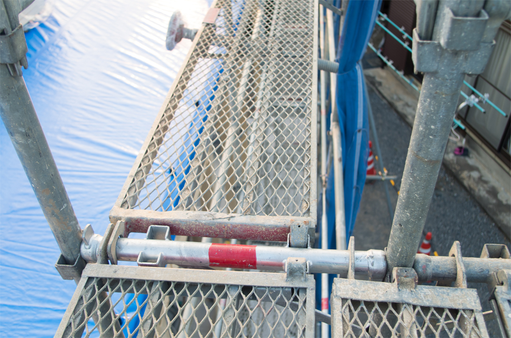 足場とは、現場で必要となる仮設の通路や作業床を指します。最終的に解体されるため形として残りませんが、その品質が作業員の安全や建物の仕上がりに影響する重要な設備です。